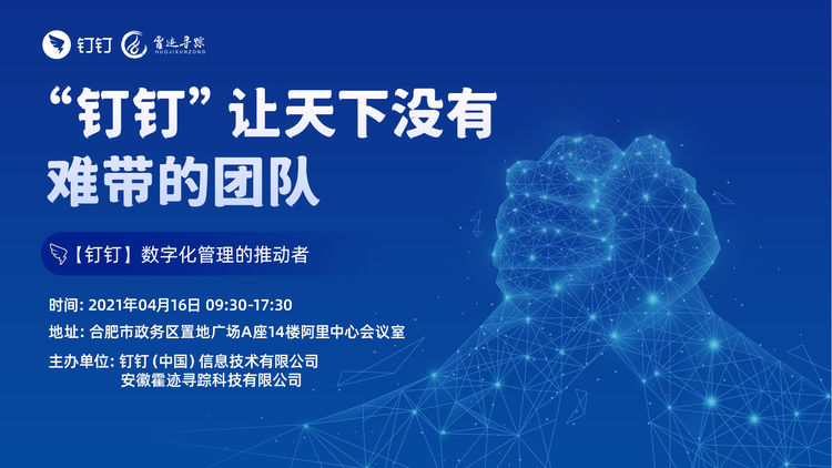 2021年4月16日,由阿里巴巴集团旗下钉钉(中国)信息科技有限公司主办,钉钉金牌服务商安徽霍迹寻踪科技有限公司承办,安徽首届“钉钉,让天下没有难带的团队” 数字化管理峰会在合肥阿里中心圆满召开!