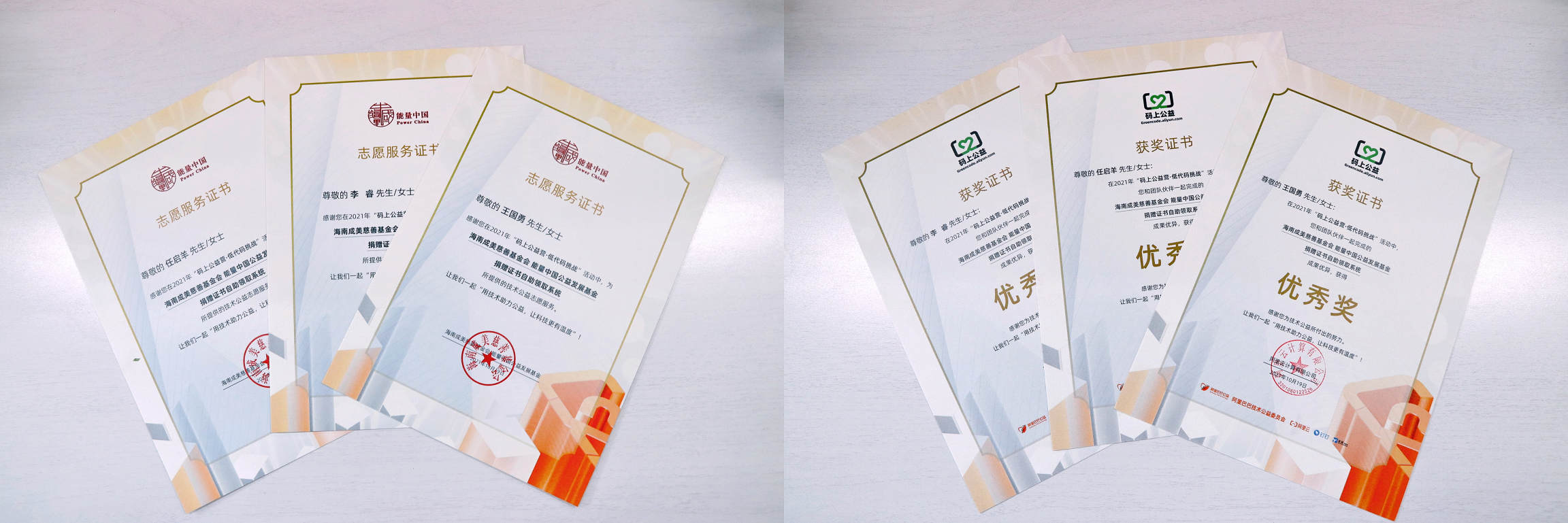 公益证书展示