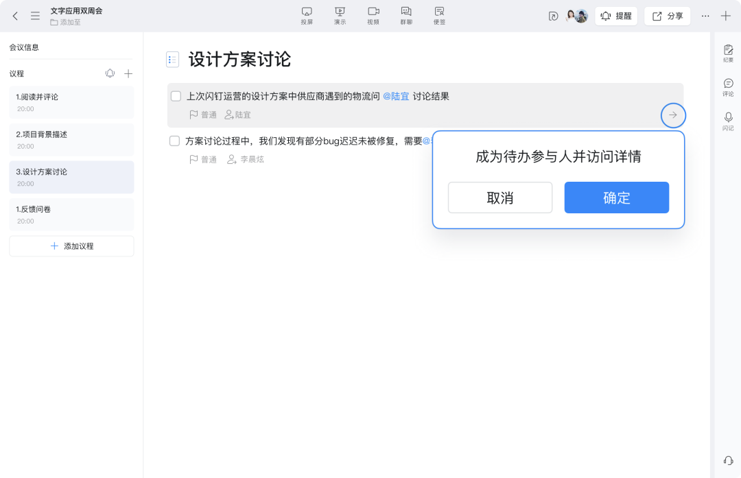 演示模式支持查看划词评论,讨论分歧高效达成共识。