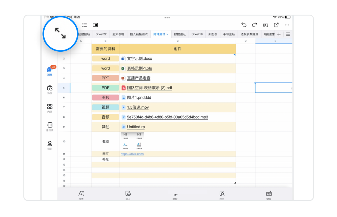 在iPad端打开钉钉表格
