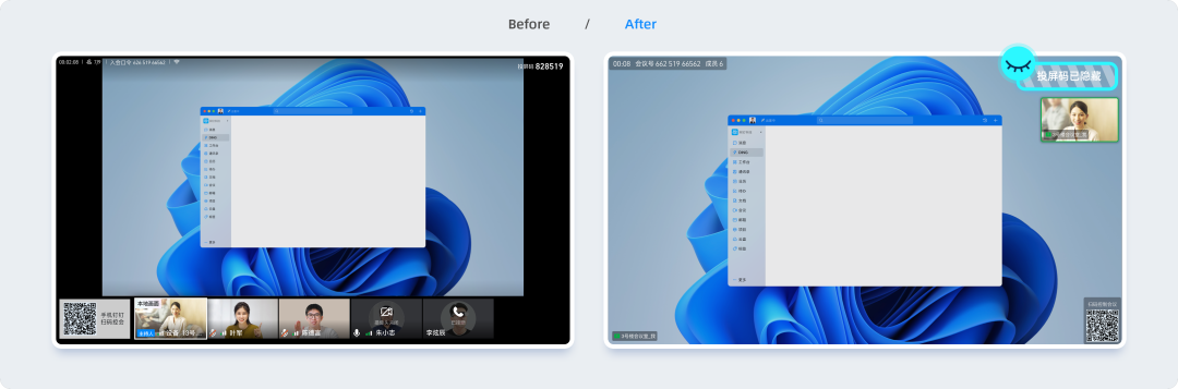 管理后台可配置“投屏/共享过程中隐藏投屏码”,开启后投屏/共享时均可隐藏投屏码