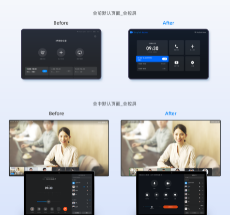 会议室设备默认为三张背景图轮播,内容更丰富,硬件更友好;