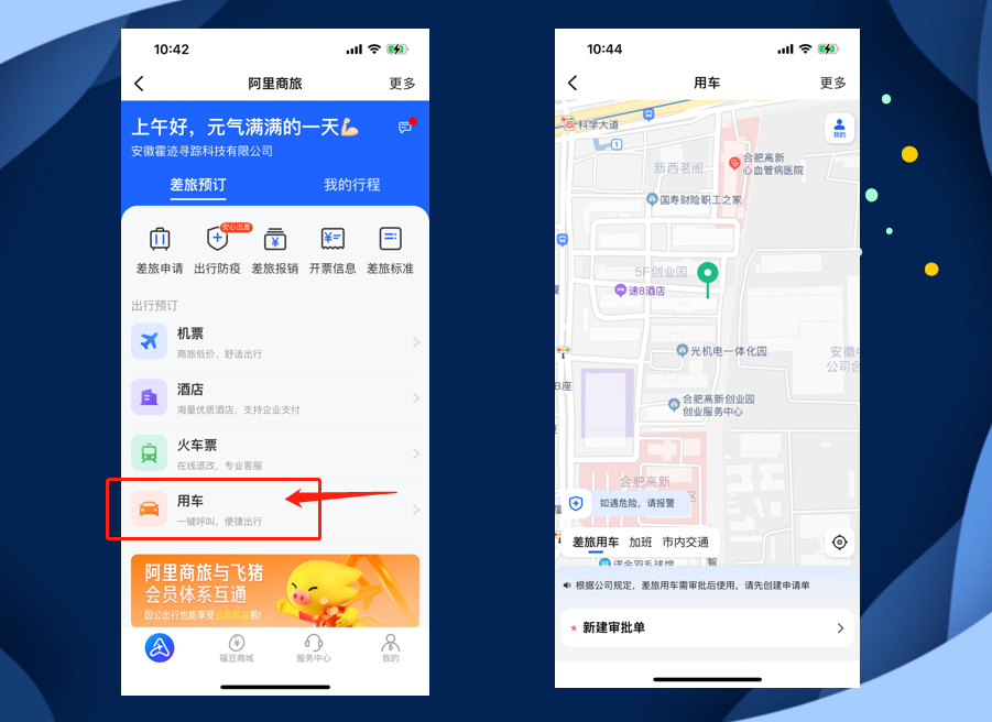 同样,我们也可以点击【用车】按钮,直接通过公司的账户叫车,不用自己垫钱再去走报销流程,非常方便。