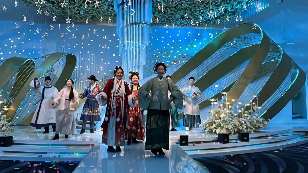华服登场,字正腔圆,伴随着一声声吉祥的祝福,他们带动起现场一阵阵掌声与欢呼,他们就是霍迹闪亮的“播音腔”!