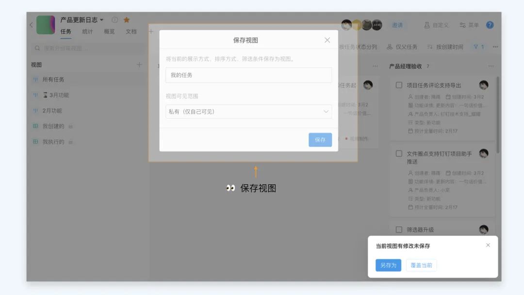 项目任务众多,想要快速定位自己关注的内容?我们可以善用筛选能力,创建专属自己的视图,设置视图为隐私模式。