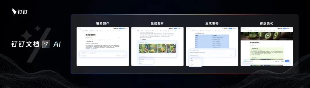 在钉钉文档中,“/”可以是用户的创意助理,帮助写文案、生成海报、美化排版等。