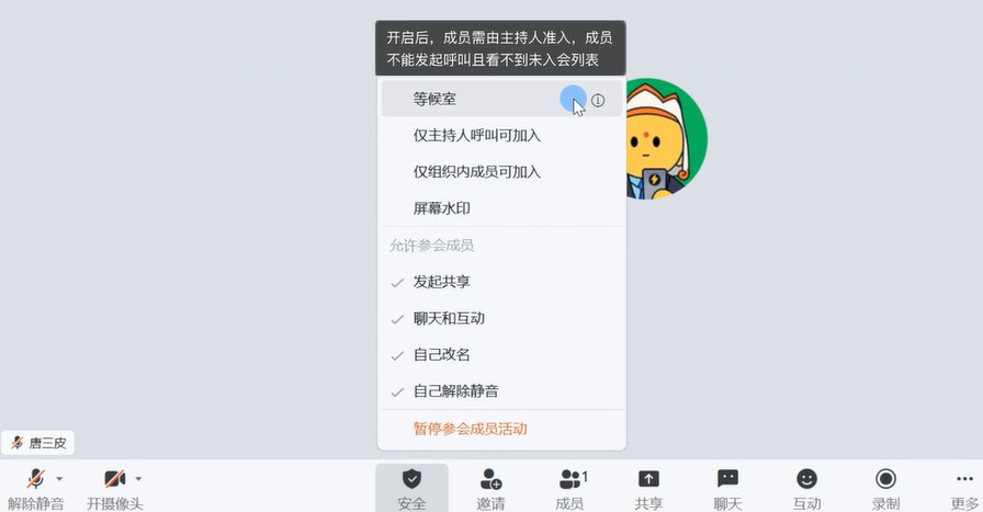 主持人开启后,所有成员入会需要审批,成员不可随意呼叫他人入会,成员看不到未入会/已离会的成员信息。