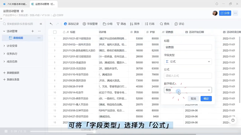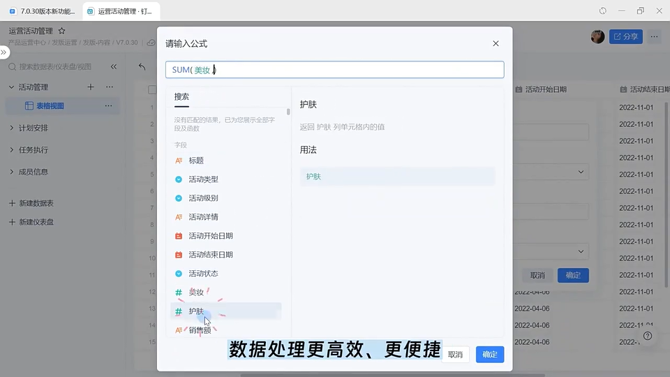 钉钉多维表新增公式字段,通过丰富的函数公式自动计算数据,让数据处理更高效、更便捷。