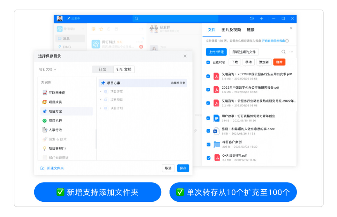 支持批量添加群文件内的文件到知识库,提高整理归档群文件效率,让内容管理更高效。
