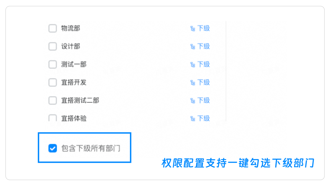 新增「包含下级所有部门」选项,对于多级配置,不再需要逐一选择,提升配置效率。
