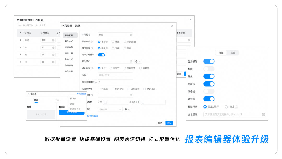 新增多种快捷能力,升级报表编辑器体验,提升报表搭建效率。