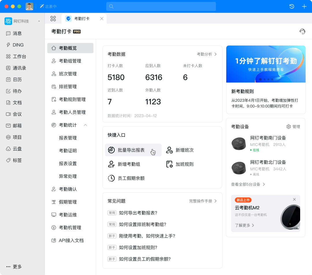 电脑端新增「考勤概览」