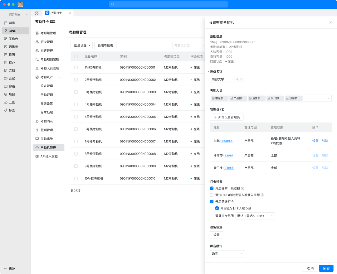 钉钉电脑端新增「考勤机管理」页面,新增、编辑、删除考勤机更加便捷。