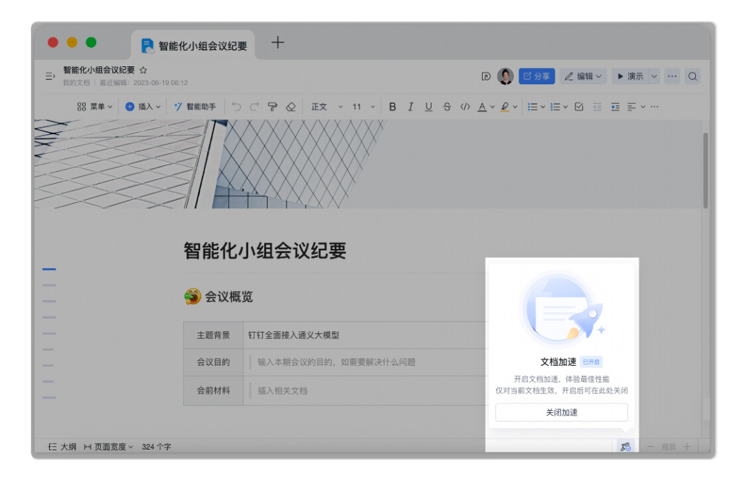 文档打开速度慢?开启加速小火箭,体验文档最佳性能,让内容创作及预览更流畅、更丝滑。