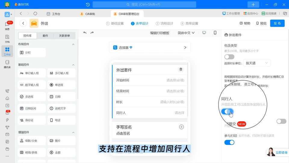 外出审批支持添加「同行人」