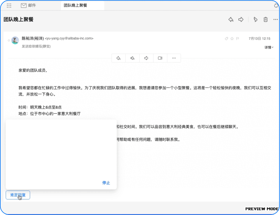 此外,邮箱产品目前也正在接入大模型,将提供智能写信与智能回复邮件功能,可以用 AI 起草、续写、润色邮件。