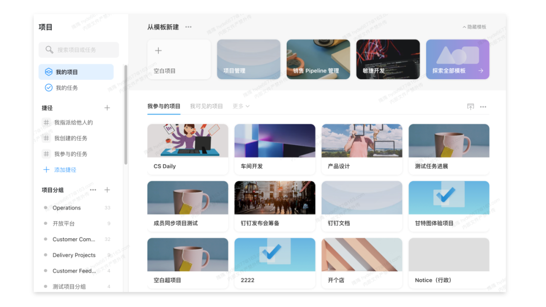管理员可以进入管理后台后开启「安全水印」,开启后项目成员空间出现水印,加强企业内部信息管理,防止截屏、拍照泄密。