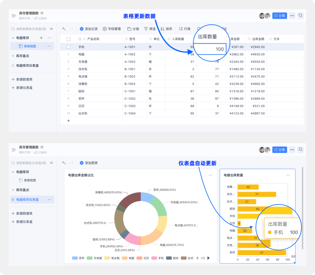 想要减少繁琐的手动操作就能第一时间掌握最新数据?钉钉多维表的数据表有更新时,仪表盘会自动刷新,及时进行数据同步,解放双手,提高办公效率。