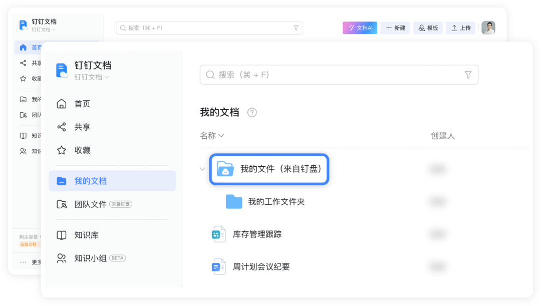深度整合钉盘「团队文件」及「我的文件」,一站式管理文件!