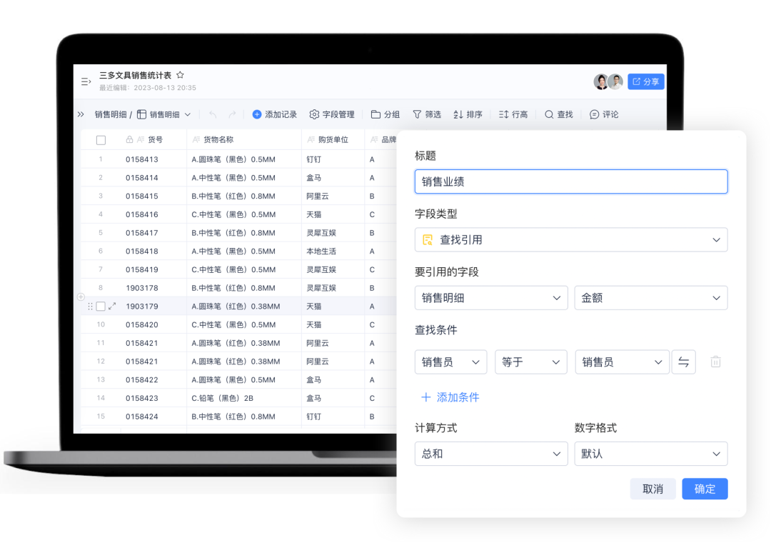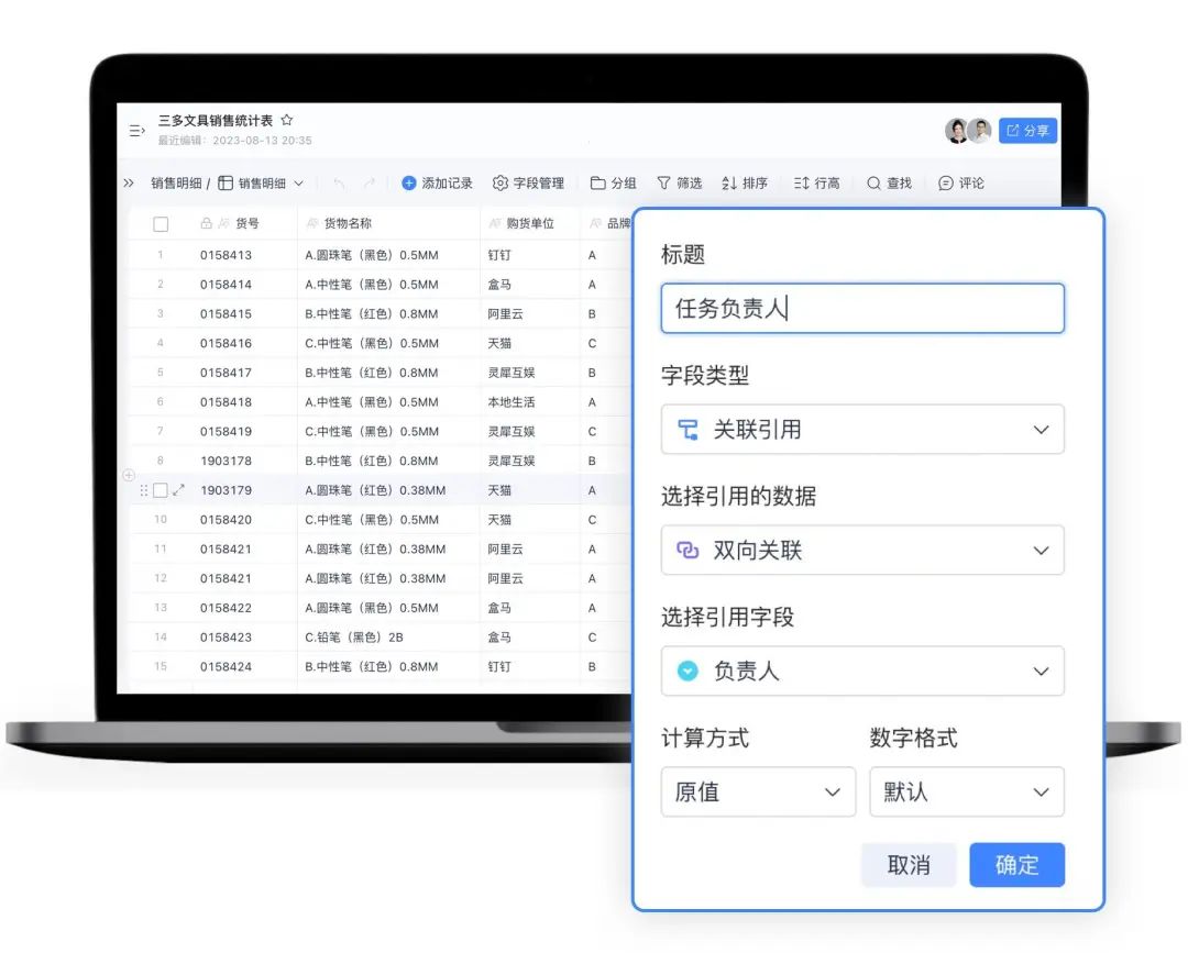 支持使用查找引用字段,快速查找跨表数据进行关联,让数据处理更高效、更便捷。