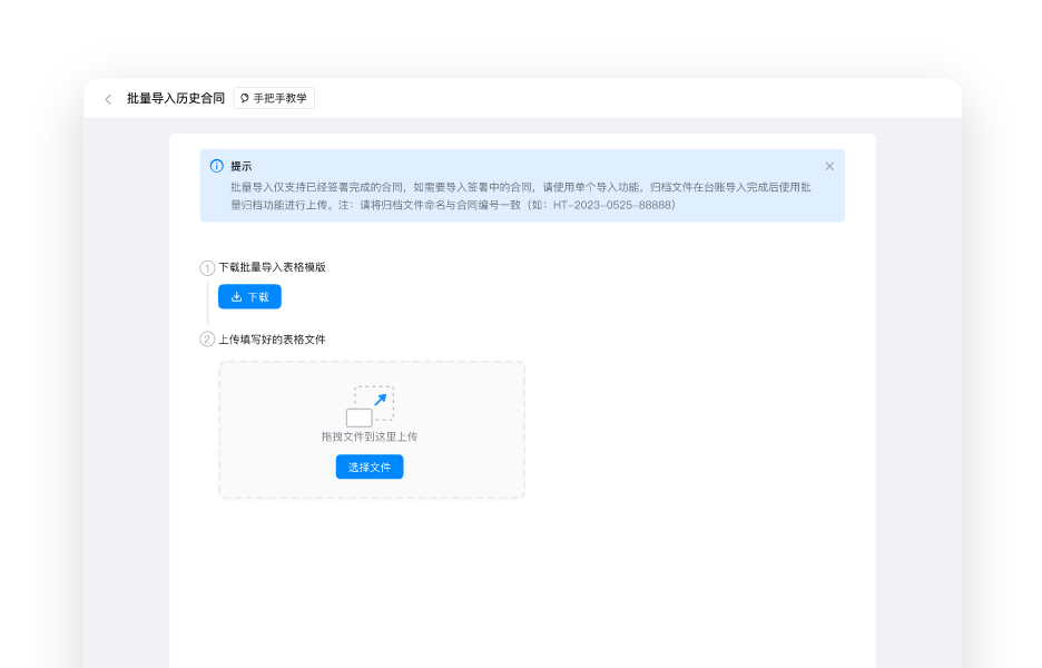 支持批量导入历史合同