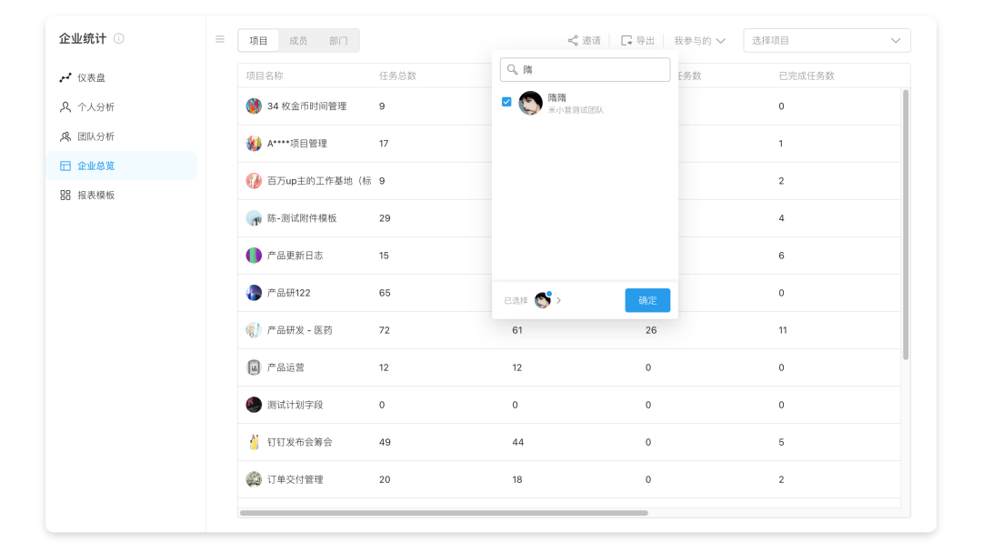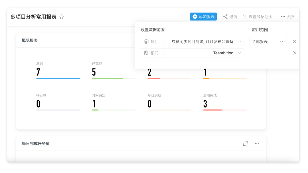 仪表盘新增「部门」统计维度