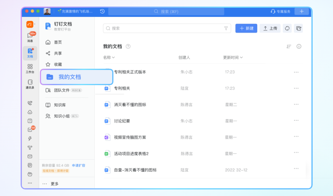 主导航点击「我的文档」不再跳出新页面,减少页面之间的来回跳转,让操作体验更流畅、更便捷。
