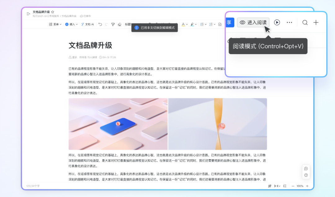 编辑与阅读两种模式支持快速切换,无需滚动定位,切换方式更丝滑、更流畅,保持创作思路的连续性,提高创作效率。