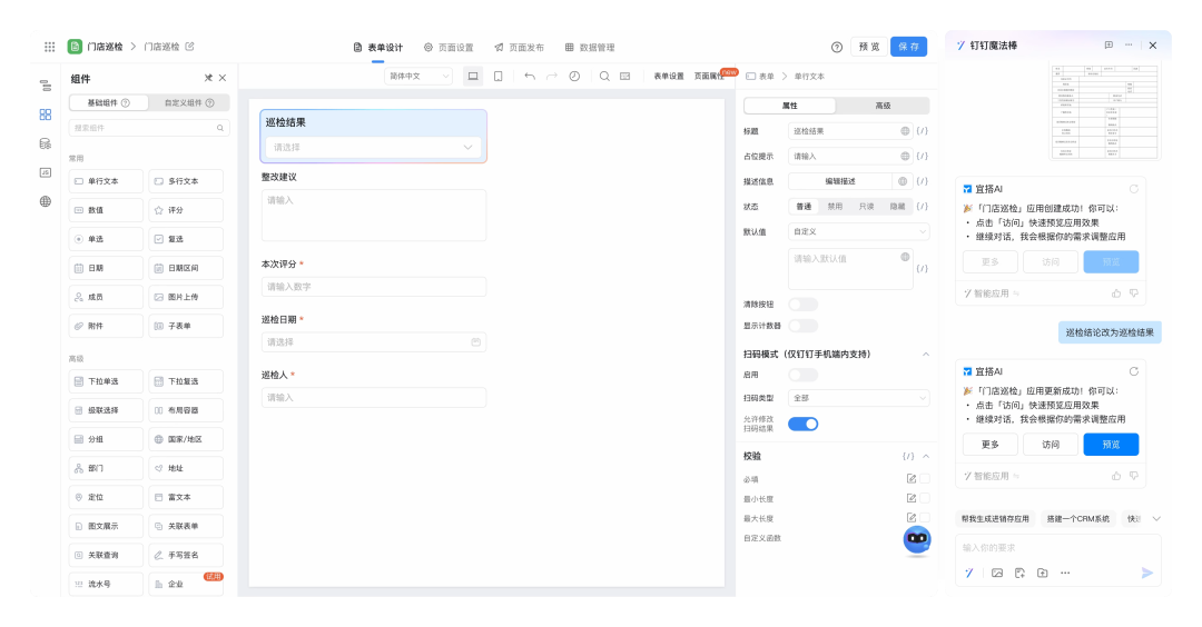 拍摄图片或描述想要的业务场景,AI 可帮助你快速生成应用;还可以通过与 AI 对话微调应用,应用搭建更简单。