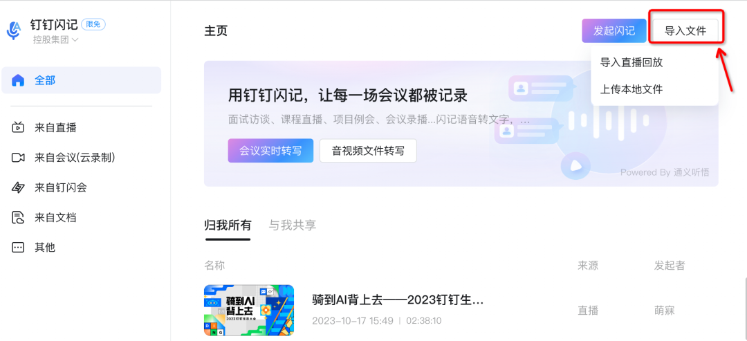Tips2:进入闪记首页,点击右上角「导入文件」