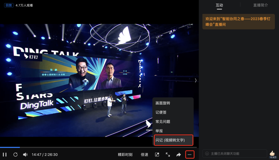 Tips1:打开直播回放链接,右下角「…」-选择「闪记」