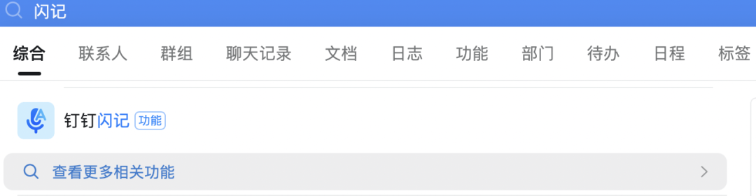 在钉钉顶部搜索栏输入「闪记」