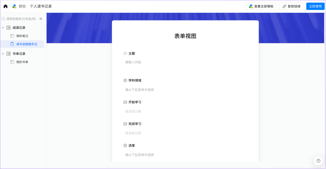 多维表还可以帮助让阅读记录变得更有趣!有时候书籍看完之后,记不住核心内容?这时候,读书记录就派上用场啦!它可以帮助你记录每一本书的名字、作者、读书日期等,让你知道自己每天都在进步!此外,你还可以与他人分享你的读书记录,互相学习、交流,就像跟朋友聊天一样有趣!最后,读书记录不仅可以让你成为一个更好的读者,还可以让你成为团队里的领读人!