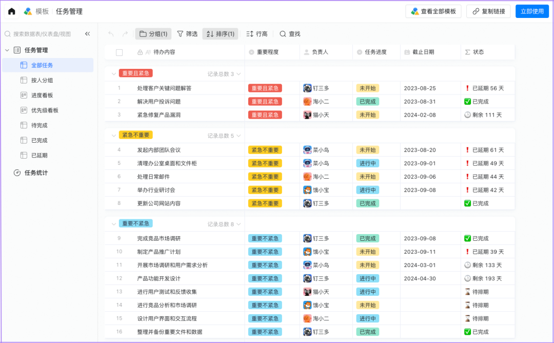 想要变成任务管理达人?没问题!通过任务管理,可以帮助您更好地组织和跟踪任务,更好地管理时间和提高效率。可以把任务按照重要程度排序,并且完成后将它们标记为已完成,这样您就可以轻松地掌握自己的进度,更高效地完成任务。