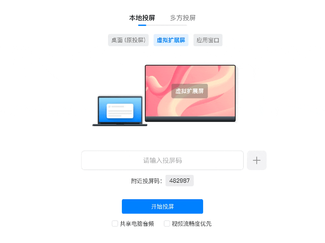 支持虚拟扩展屏投屏