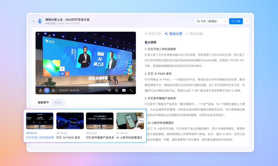 智能提炼长视频的核心章节和摘要,助你快速获取长视频精华和要点,高效获取知识。