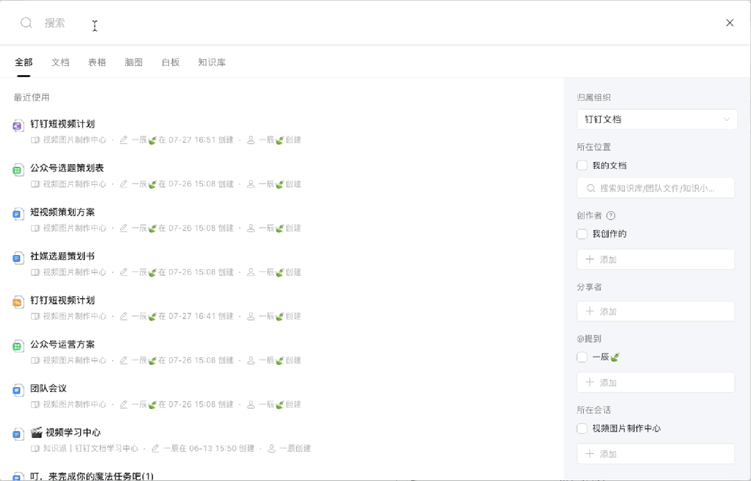能不能同时搜索到知识库和钉盘里的文件资料?