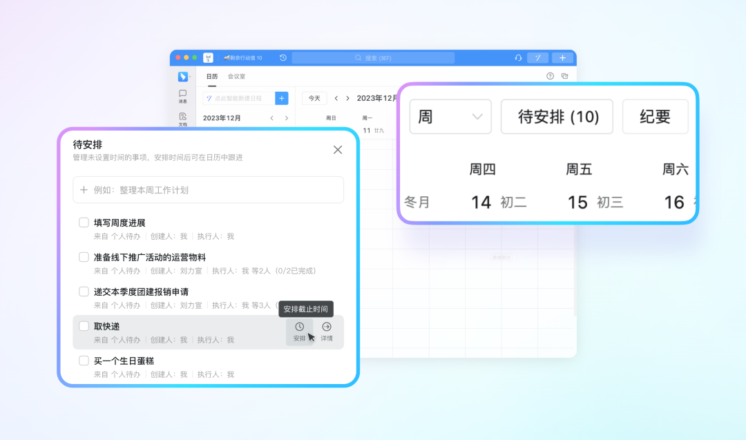 支持查看与处理「待安排」事项