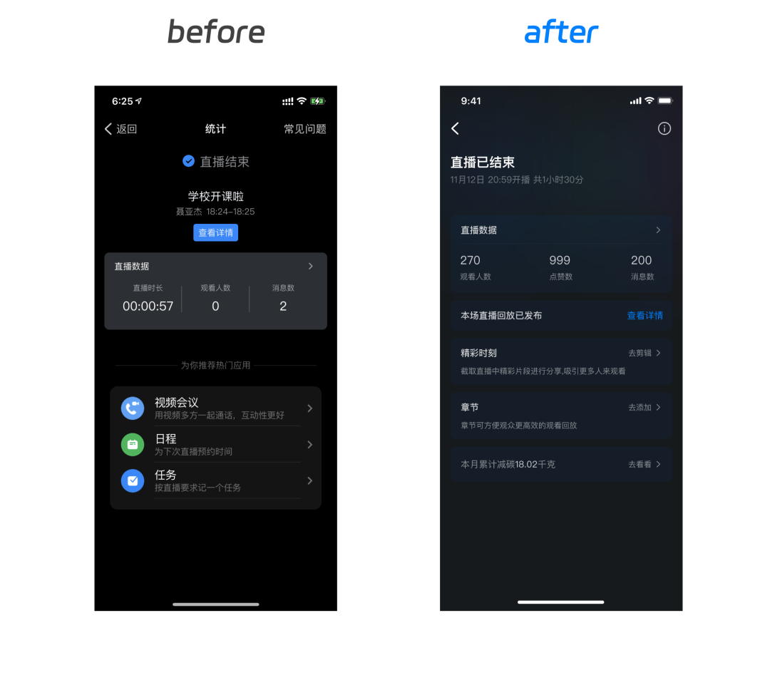直播结束页新增「精彩时刻」和「章节」等与直播相关的功能入口,帮助主播更好地运营一场直播。