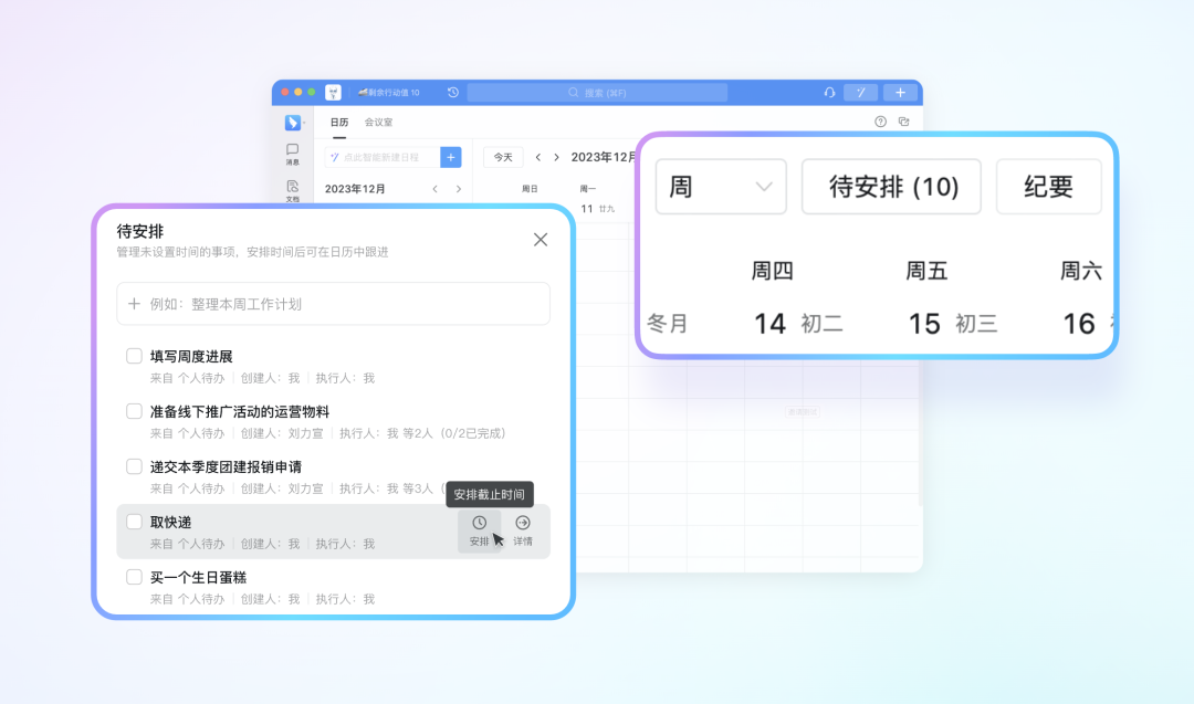 新增支持「待安排」,先记录事项再设定日程时间,待办不遗漏设置更灵活