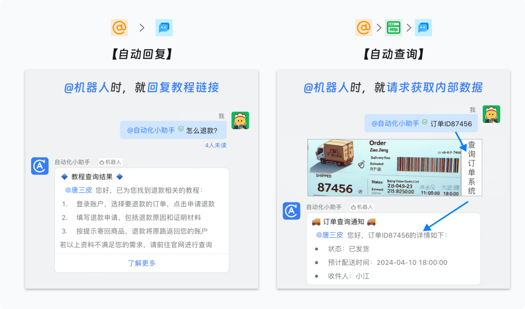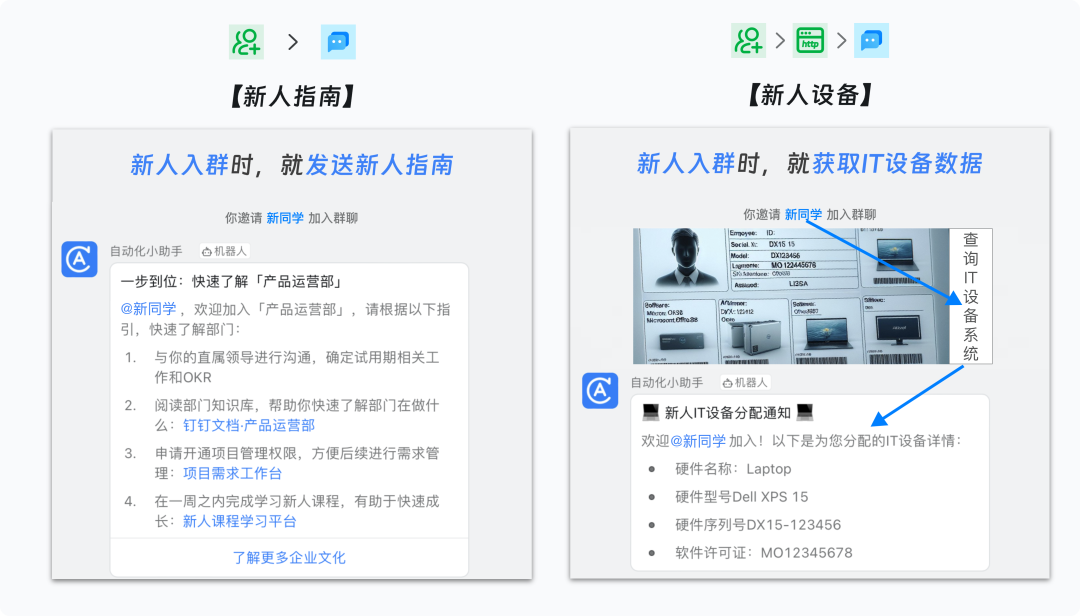 由钉钉连接平台提供的「自动化」功能自上线以来 就获得了广大用户的喜爱 近期自动化小助手再次刷新想象边界 携 AI藏头诗迎新 功能闪亮登场! 这不仅仅是一次功能迭代 更是一场“文”与“智”的浪漫邂逅 每当有新朋友加入团队时 这位深藏不露的" AI诗人"便会创作一首藏头诗 用特别的方式为大家打开职场新篇章~ 来看看当新人“梅笑寒”加入时 AI诗人如何大显身手 除了藏头诗 还可以通过自动化小助手给新人发去指南 帮助新人更好地学习成长 当然 AI 还赋予了这位全能型自动化小助手更多魔法 「智能回复」、「 智能任务」… 自动化小助手也信手拈来 全方位提升你的工作效率! 更多精彩功能等你发掘 由你定义! 定时提醒 自动查询 数据订阅 👉🏻 操作入口 选择一个内部群或外部群 点击「 群设置」-「 机器人」 选择「 添加机器人」-「 自动化小助手」即可添加使用 未来已来 让我们携手并进 一起搭乘这趟智能化快车 迎接更加有趣的协作新时代吧!