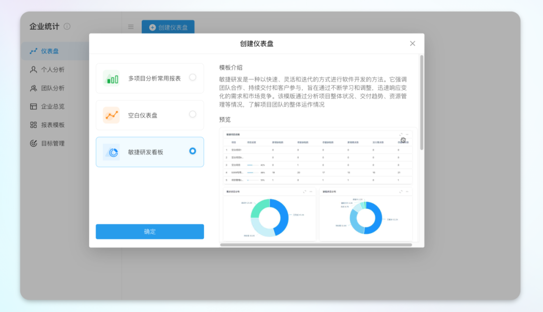 「仪表盘」新增敏捷研发模板