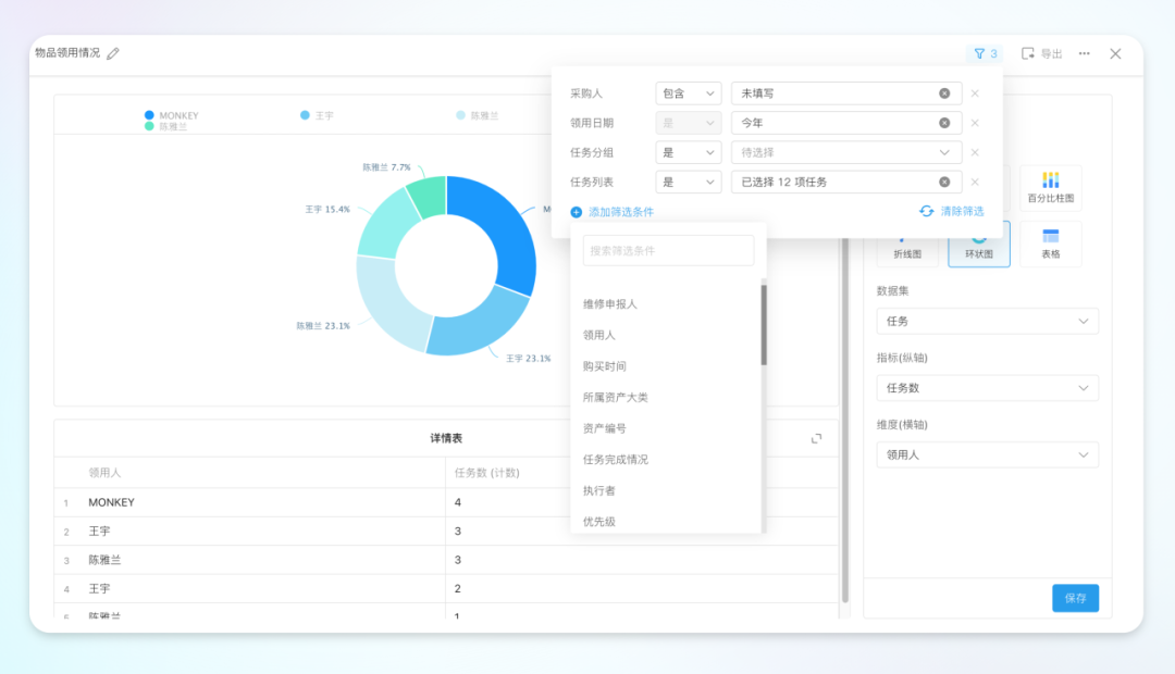 「项目统计」和「企业统计」的筛选能力全面升级,支持更灵活地筛选字段,进一步提高数据分析能力。