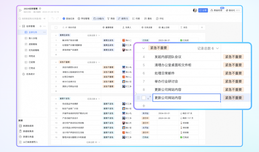 在表格视图分组状态下进行粘贴时,如果所需行数不足,系统会自动增加行数并进行粘贴,内容不会直接跨分组覆盖,让数据整理更加整洁高效。