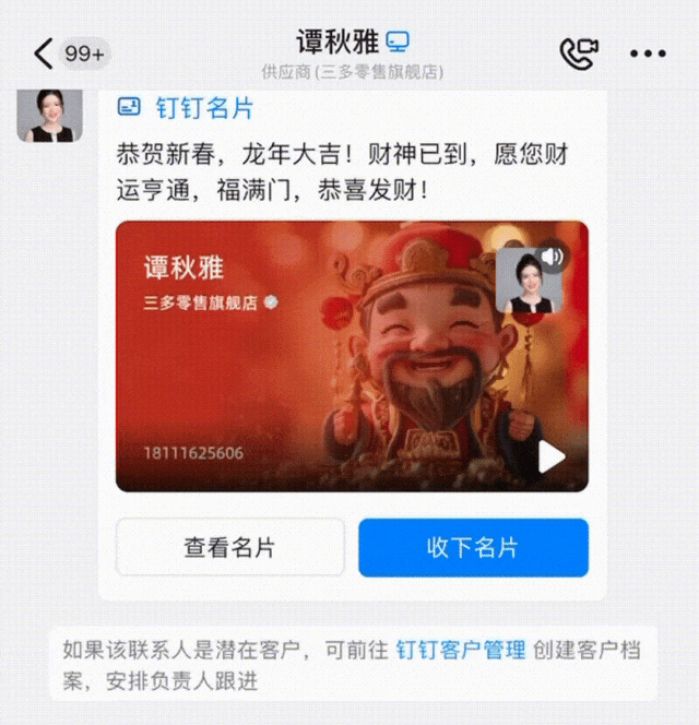 第二步:定制贺岁名片,支持添加个人视频、一键AI生成祝福,完成后分享名片即可