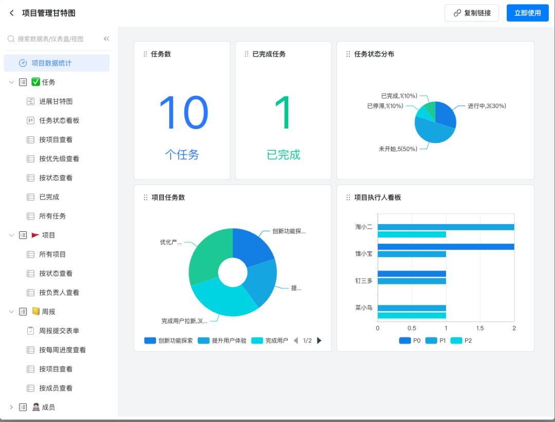 项目里程碑:作为项目进程的航标,聚焦于追踪那些至关重要的时间节点,轻松管理多个项目,跟踪关键里程碑,确保项目按时交付,团队协作更加高效顺畅。