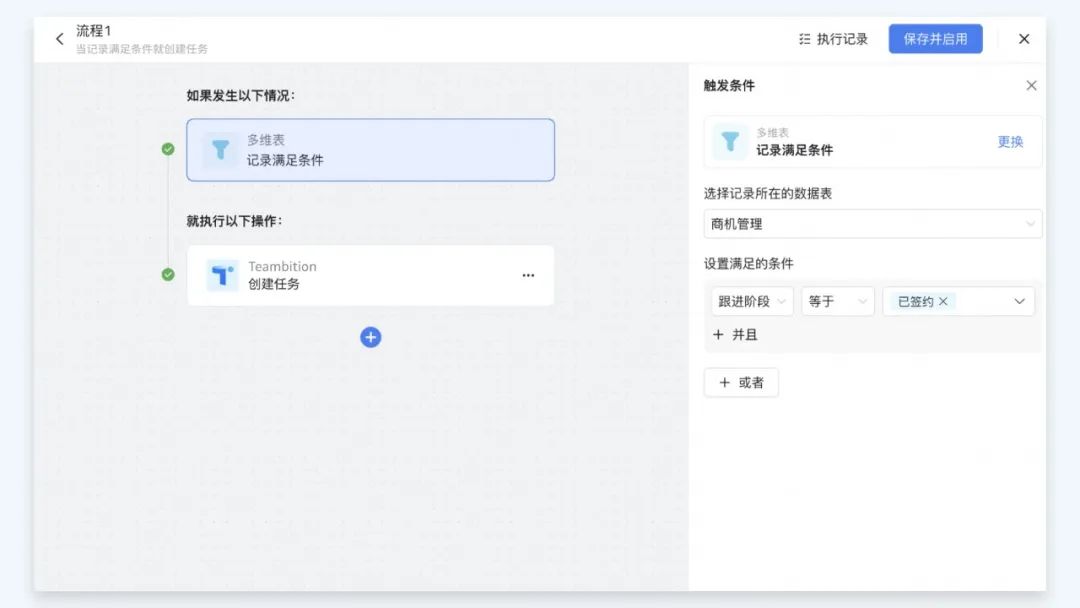 钉钉多维表自动化规则支持创建 Teambition 任务