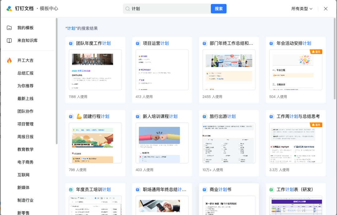 新的一年想要在职场上有所斩获吗?那就来制定一份属于你的新年计划吧!在钉钉文档模板中心中,为你提供文档、表格、多维表、脑图等多种类型计划模板,一键启用超级方便,为一年的成功奠定基础。