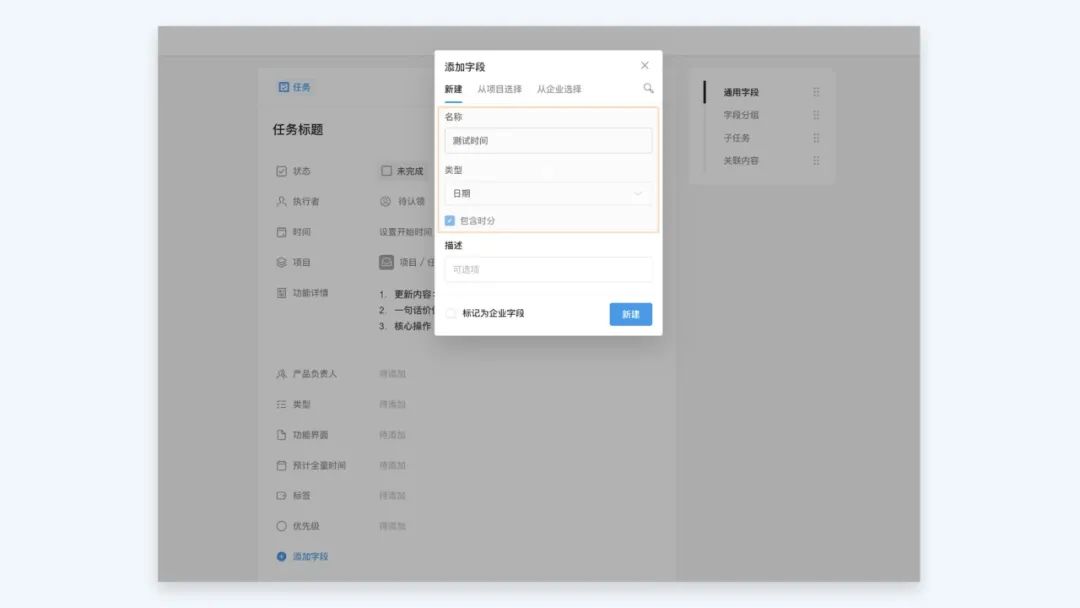 三、「企业任务类型」中任务字段的高级配置支持同步至项目