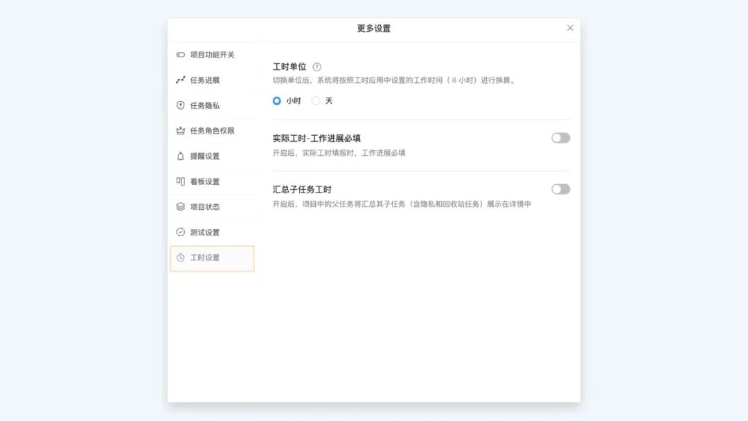 四、「项目模板」支持工时配置